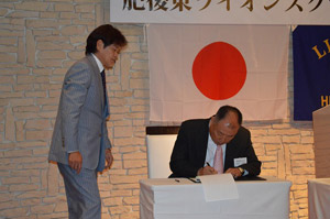 チャーター申請書に署名するL内田浩一(肥後東LC会長)