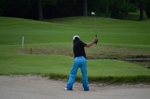 一番スタートが9番ホールに来ました。バンカーショット上手い!