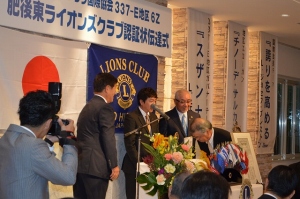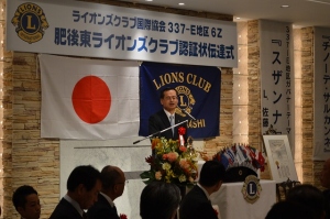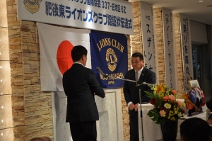 佐藤ガバナーより認証状(チャーター)を受ける肥後東LC会長L内田