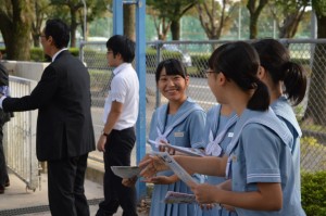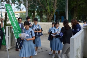桜木中学校は7時30分にビラ配りは終了(生徒が全員登校)