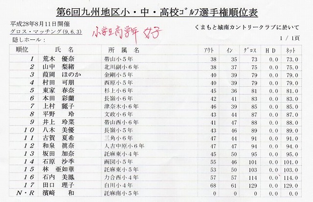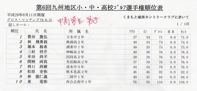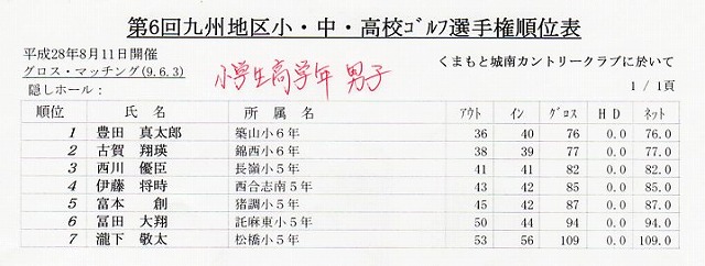 2016年8月11日 九州地区小・中・高校生ゴルフ選手権大会開催