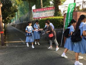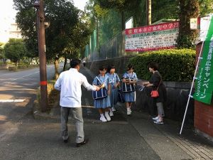 東町中学校・桜木中学校でビラ配りしました。