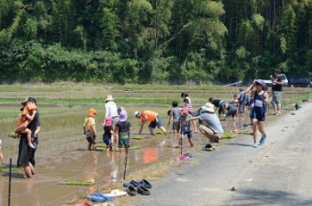 中には田んぼに入るのを怖がる子供もいました。