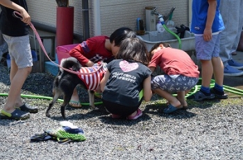 僕たちは食事の用意ができるまで、ワンちゃんと遊んでまーす!
