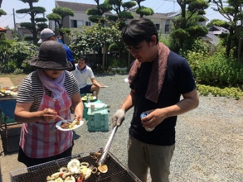 焼手は熱いねー! だからビールがうまいんだ!
