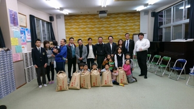 (6月18日龍山学苑の子供たちと田植えをしたお米を寄贈しました)
