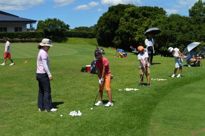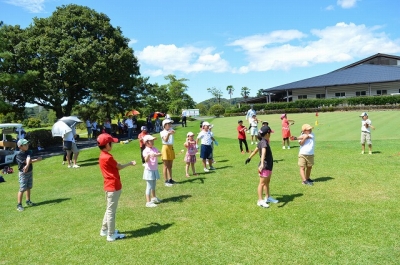3名の女子プロゴルファーによるキッズゴルフ教室が開催されました。