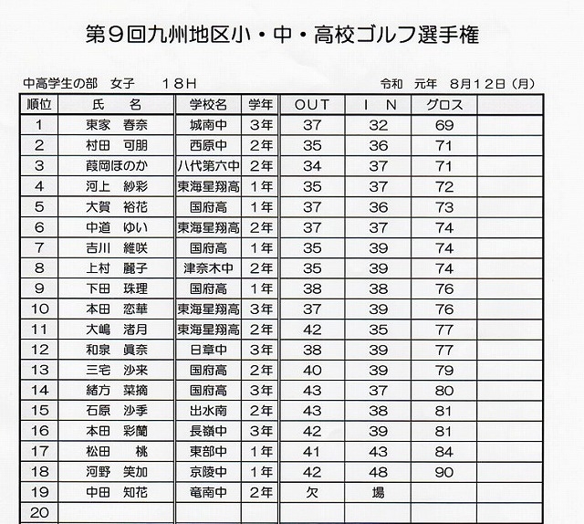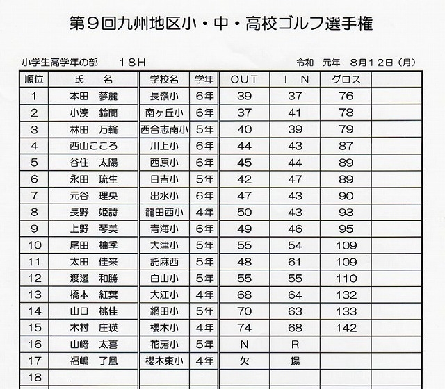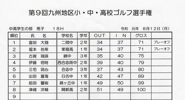 2019年8月12日 九州地区小、中、高校生ゴルフ選手権大会開催
