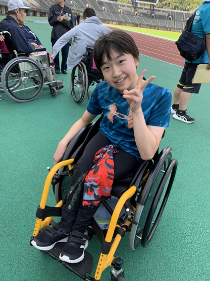 カノンちゃんです。熊本城東LCより競技用車いすを贈呈されてます。