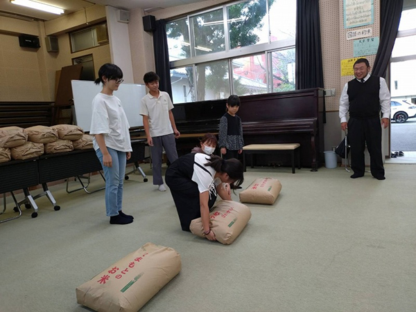 (子供たちと田植えして、稲刈りして、精米したお米の寄贈です)